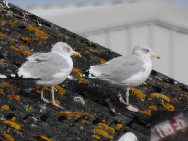 The second Herring Gull - 4X:W , was ringed as a chick, on the 6th May 2015, on Big Copeland Island just off the coast from Donaghadee in County Down. I recorded the first re-sighting for this gull on the 19th January 2020, on the seafront at Donaghadee.